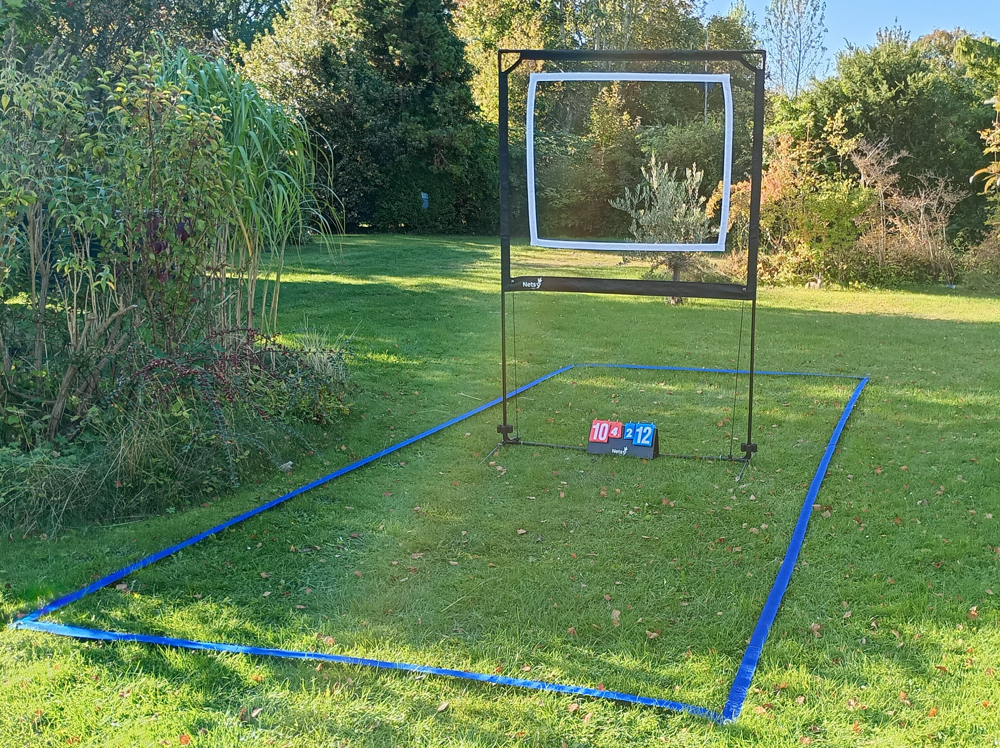Spillesættet kan samles utrolig nemt på få minutter, og der medfølger dansk samlevejledning med billeder, så du nemt og hurtigt kan begynde at spille. Husk at sikre det med de medfølgende pløkker i blæsevejr.