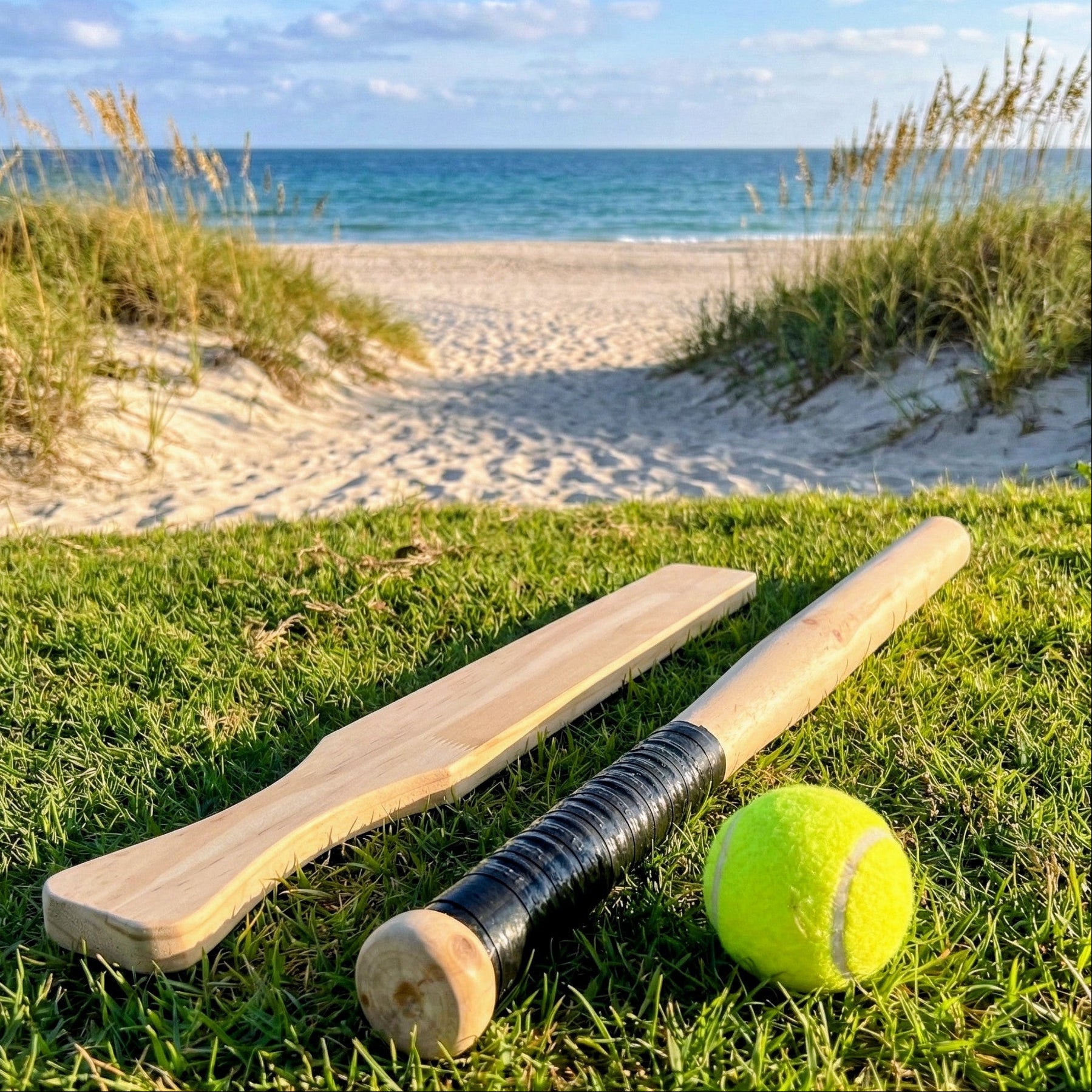 Indhold: 2 træbats + 1 bold,